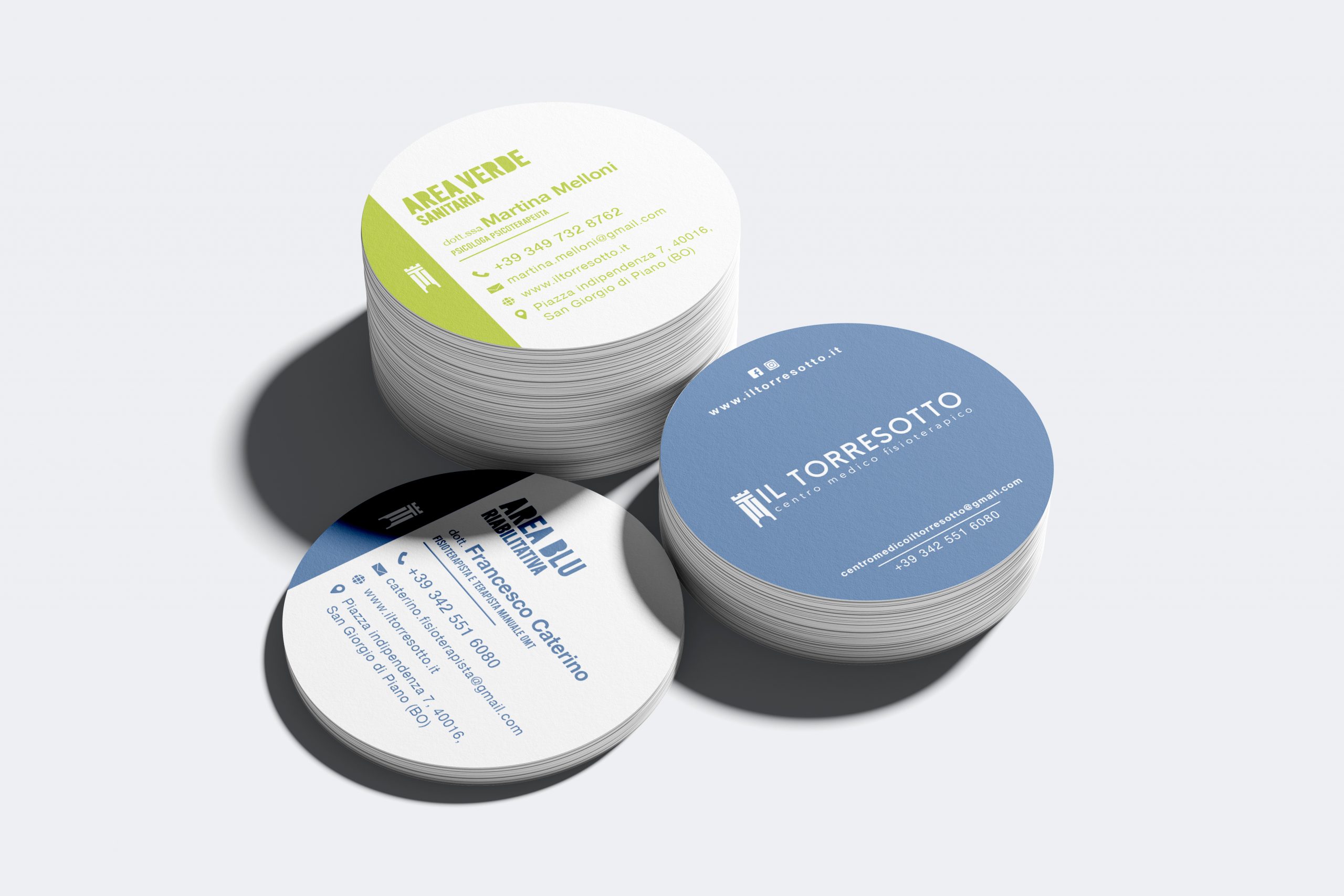 Il Torresotto è un centro polispecialistico in provincia di Bologna. Per questo cliente abbiamo svolto un lavoro graphic design andando a disegnare i biglietti da visita del centro polispecialistico. I biglietti si dividono in 2 aree come quelle presenti all’interno del centro. Abbiamo disegnato un template adattabile a tutti i professionisti, in questo modo ogni professionista che lavora all’interno del centro può avere il suo biglietto da visita personale logato Il Torresotto